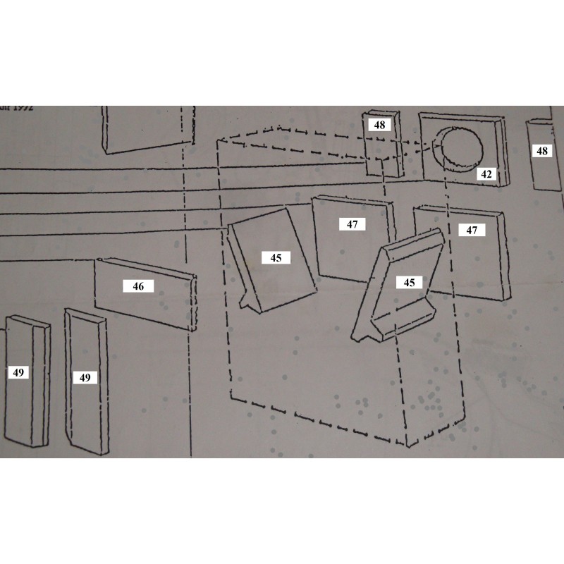 Šamotová tvarovka určená pro kamna Filex výrobce Thorma, starší provedení - spáry mezi tvarovkami jsou vymazané šamotovou výmazovou hmotou. Tvarovka vhodná i pro kamna se stejným ohništěm : Filex H, Eurofen, Marburg